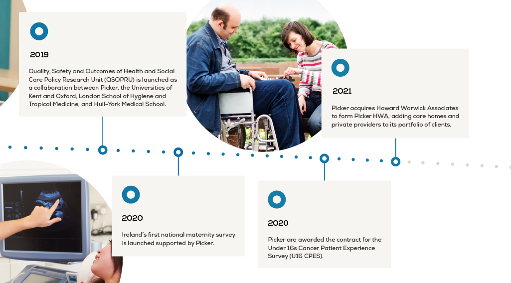 From partnering with world-leading pharmaceutical organisations and healthcare providers to working with governments, universities and charities, Picker’s work continues to follow Harvey and Jean Picker’s legacy by putting people at the heart of care. “Person centred” means recognising the experience of everyone, from patients and service users to staff, friends, and family.
